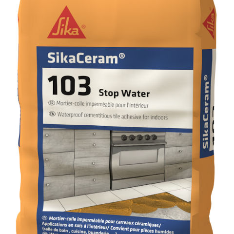 SikaCeram®-103 Stop Eau est un mortier colle, facile à employer avec simple addition d’eau, à base de ciment, de charges et d’adjuvants spéciaux pour pose de carreaux céramiques en couche mince et continue.