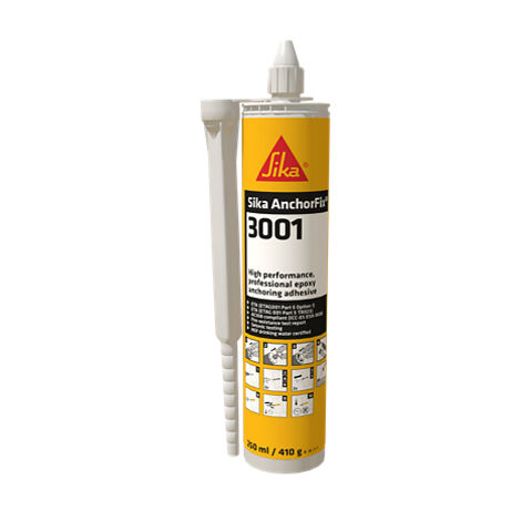Le Sika AnchorFix®-3001 est une résine époxydique à deux composants, thixotrope, conditionnée en cartouche monocorps, à hautes performances pour tiges filetées et barres d'armatures dans du béton fissuré / non fissuré.