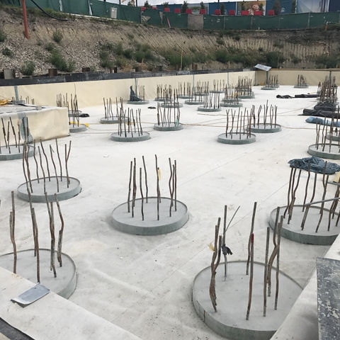 - Pré-appliqué, installation avant la mise en oeuvre du ferraillage et le coulage du béton