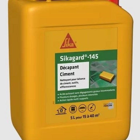 - Sikagard®-145 Décapant Ciment est un acide de dernière génération spécialement formulé pour le nettoyage des dépôts de ciment frais ou durcis sur le matériel ou les matériaux de construction.